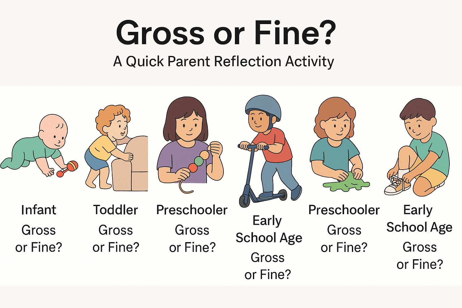Children develop fine motor skills gradually, and progress can vary from one child to another. Here are some age-appropriate milestones to look out for: